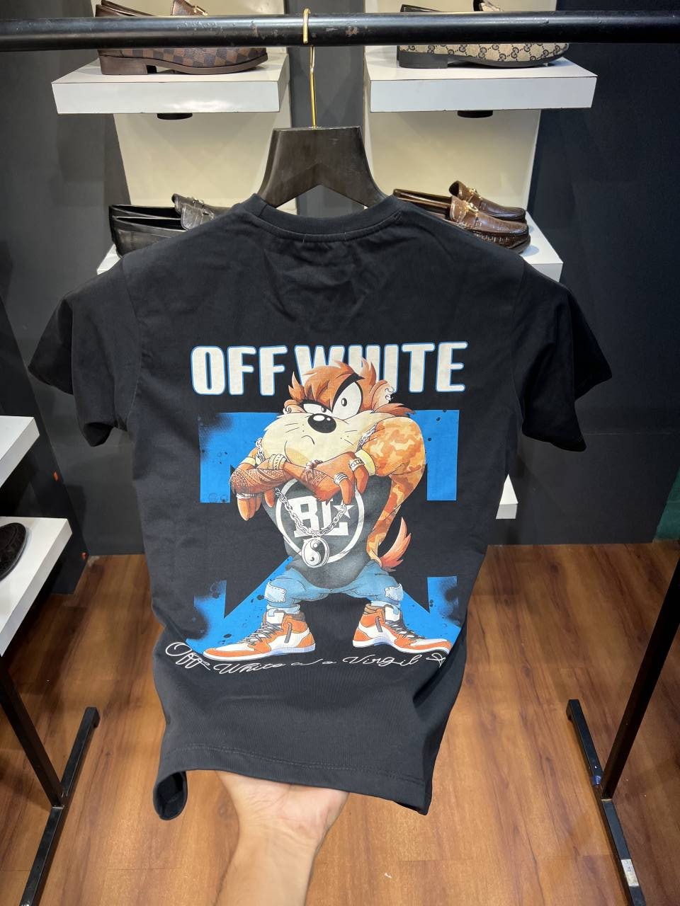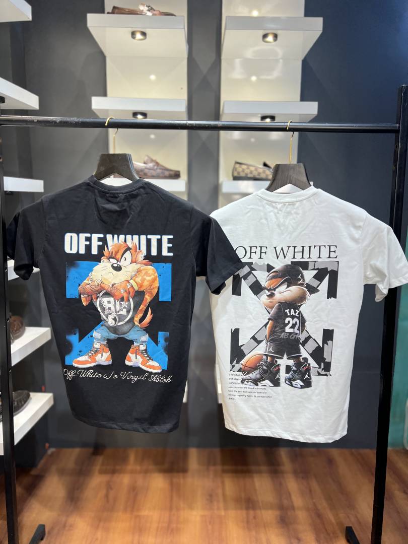 OFF-WHITE IMPORTED PRINTED DROP SHOULDER TSHIRT WITH CARRY BAG